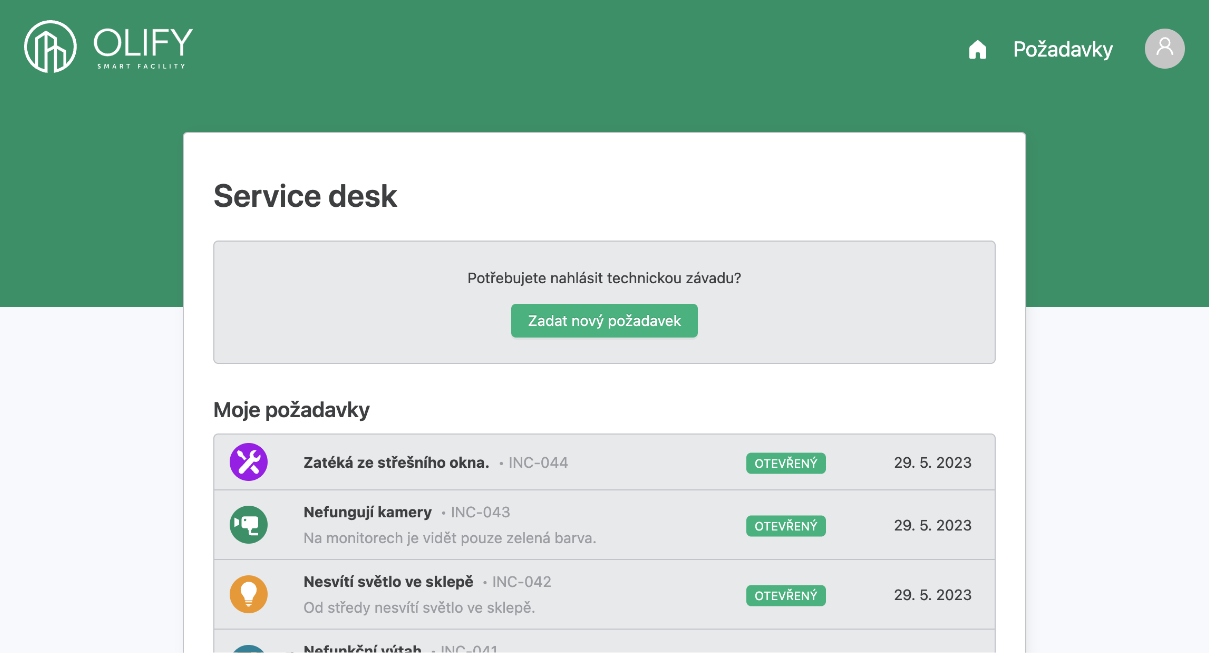 Pro co nejsnazší sběr požadavků a problémů od vašich zaměstnanců a klientů jsme pro vás vytvořili funkci Service desk údržby. Prostřednictvím webového portálu a emailového kanálu můžou uživatelé jednoduše zadávat a sledovat požadavky nebo incidenty údržby.