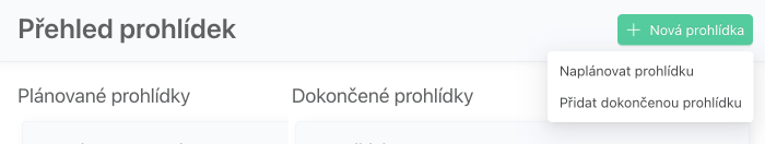 Stisknutím tlačítka + Nová prohlídka můžete buď Naplánovat prohlídku, nebo Přidat dokončenou prohlídku.