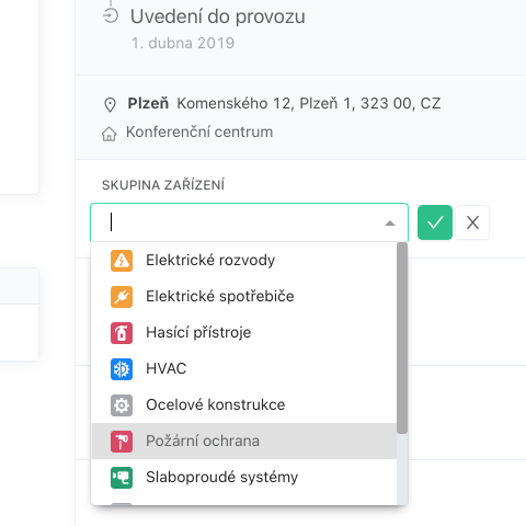 Kliknutím na ikonu editace u atributu Skupina zařízení (v pravém panelu) se zobrazí výběrové pole.