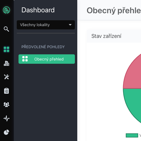 První, co se uživateli po přihlášení zobrazí je Dashboard. Dashboard slouží pro rychlý náhled na stav údržby jednotlivých zařízení, pro přehled o naposledy dokončených prohlídek a otevřených požadavků.